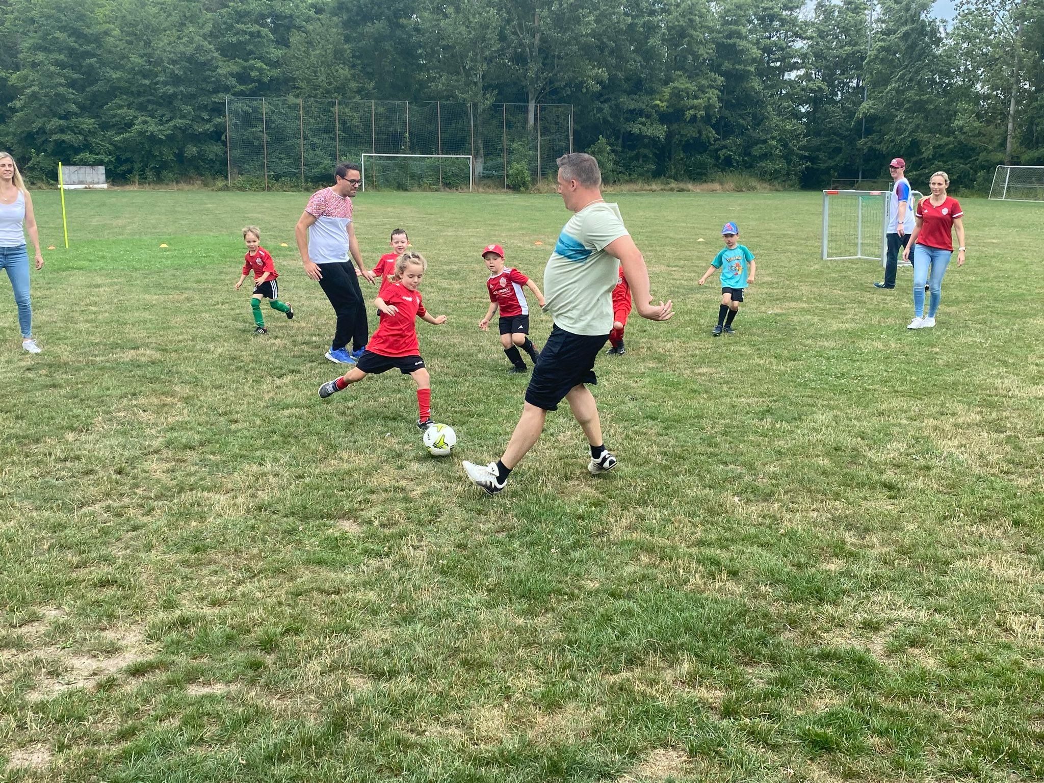 Wie es bei den Kickers üblich ist, feiern alle zusammen. Unsere G-D Jugend feierten den ganzen Tag zusammen auf unserem Gelände und es kam zu mehreren Duellen gegen die Eltern.